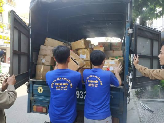 Nhân viên phối hợp khách hàng đóng góp đồ đạc vận chuyển đến nơi yêu cầu